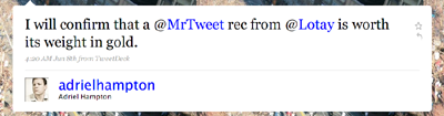 To get found by people who would be interested in what you do, there is no better way than to get MrTweet recommendations from your fans!
