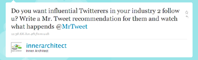 To get found by people who would be interested in what you do, there is no better way than to get MrTweet recommendations from your fans!